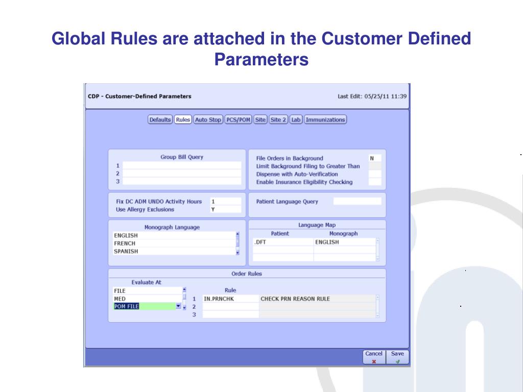 Added Sophistication • Utilizing Rules linked to fields on a Customer Defined Screen (CDS). • Activating rules by selecting appropriate fields on the CDS.