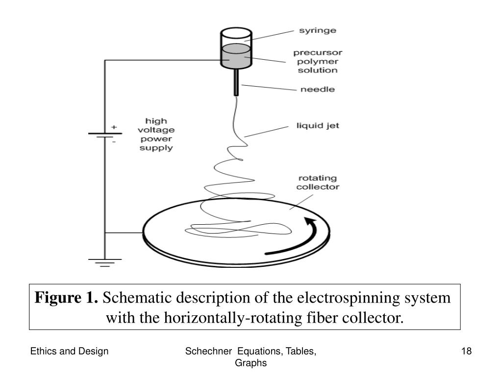 Figure 1. Schematic description of the electrospinning system with the horizontally-rotating fiber collector. Schechner Equations, Tables, Graphs