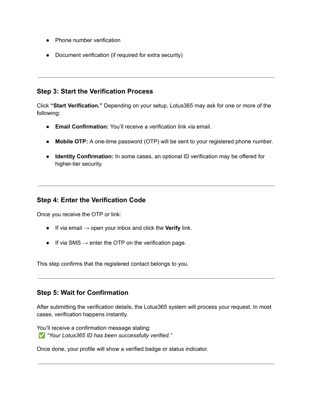 ? How Verification Enhances User Trust Trust is at the heart of every successful online platform. A verified Lotus365 ID builds that trust by confirming the authenticity of every user. For users, this means: ● A safer community. ● More reliable interactions. ● Greater protection from impersonation or fraud. Lotus365’s verified environment creates a sense of belonging where every user knows their data is respected and protected. ? Re-Verification and Updates Occasionally, you might need to re-verify your Lotus365 ID — for example, if you change your phone number or email. The re-verification process is identical to the original one and ensures your account remains secure even after updates. To Re-Verify: 1. Log in and go to Account Settings. 2. Choose Update Contact Details. 3. Verify new details via OTP or email link. 4. Confirmation appears instantly. Re-verification keeps your account current and ensures continued protection.