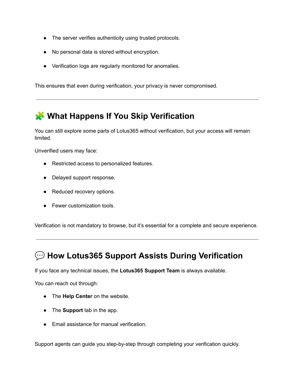 ● The server verifies authenticity using trusted protocols. ● No personal data is stored without encryption. ● Verification logs are regularly monitored for anomalies. This ensures that even during verification, your privacy is never compromised. ? What Happens If You Skip Verification You can still explore some parts of Lotus365 without verification, but your access will remain limited. Unverified users may face: ● Restricted access to personalized features. ● Delayed support response. ● Reduced recovery options. ● Fewer customization tools. Verification is not mandatory to browse, but it’s essential for a complete and secure experience. ? How Lotus365 Support Assists During Verification If you face any technical issues, the Lotus365 Support Team is always available. You can reach out through: ● The Help Center on the website. ● The Support tab in the app. ● Email assistance for manual verification. Support agents can guide you step-by-step through completing your verification quickly.