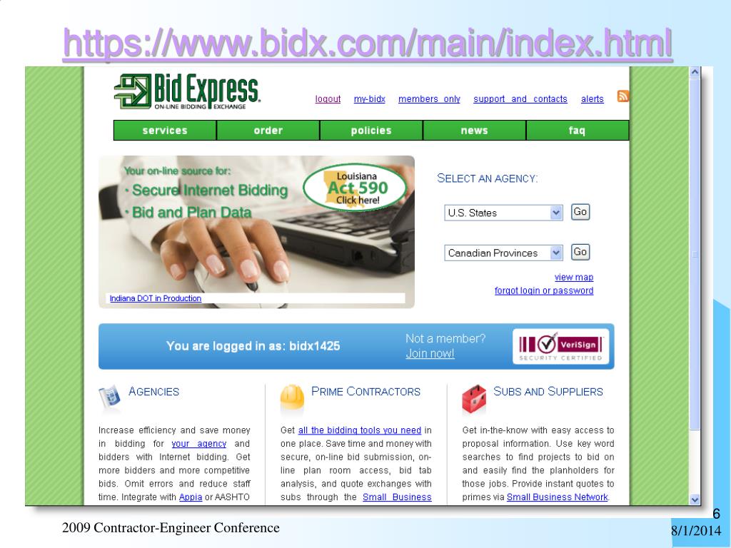 https://www.bidx.com/main/index.html 2009 Contractor-Engineer Conference