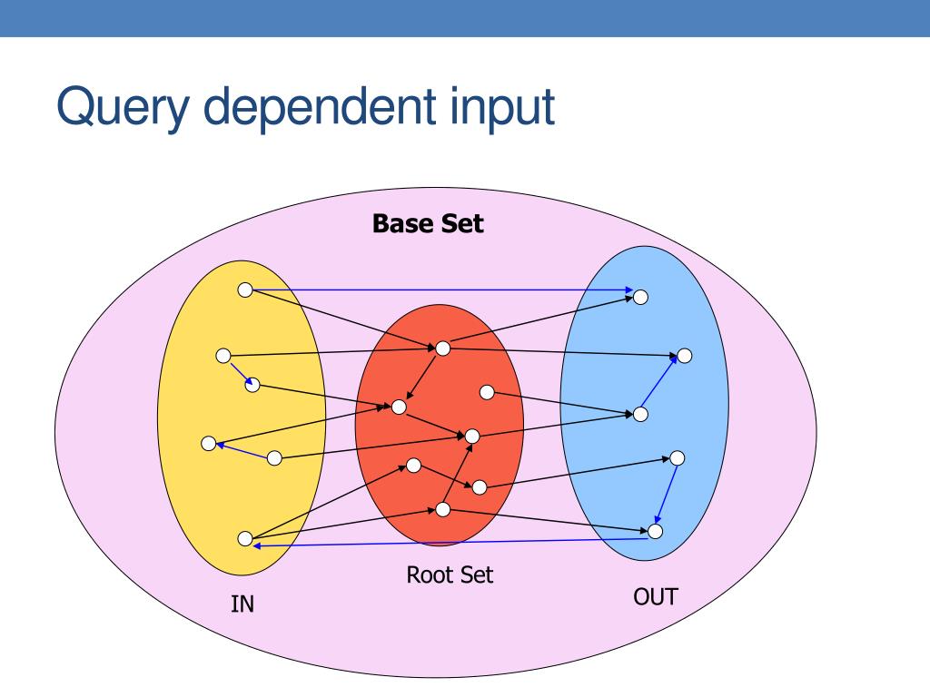 Query dependent input Base Set Root Set OUT IN