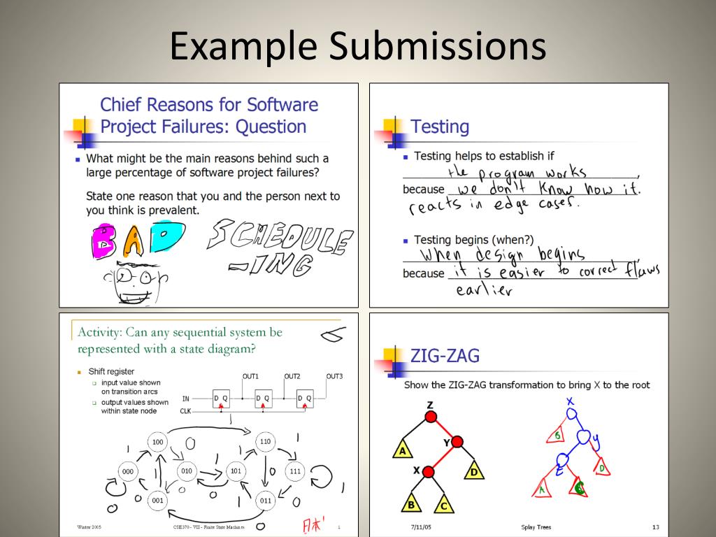 Discussion Artifact • Use student generated example to explore different aspects of a topic • Assess overall understanding • Diagnose misconceptions