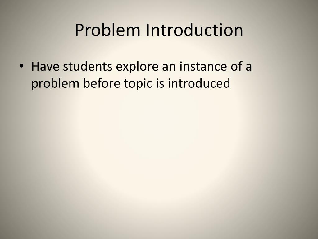 Problem Introduction • Have students explore an instance of a problem before topic is introduced