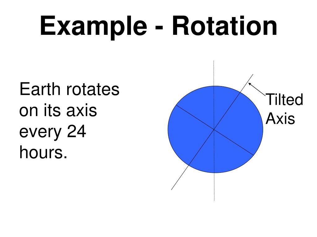 Tilted Axis Example - Rotation Earth rotates on its axis every 24 hours.