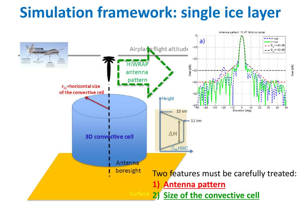 Simulation framework: single ice layer Two features must be carefully treated: Antenna pattern Size of the convective cell
