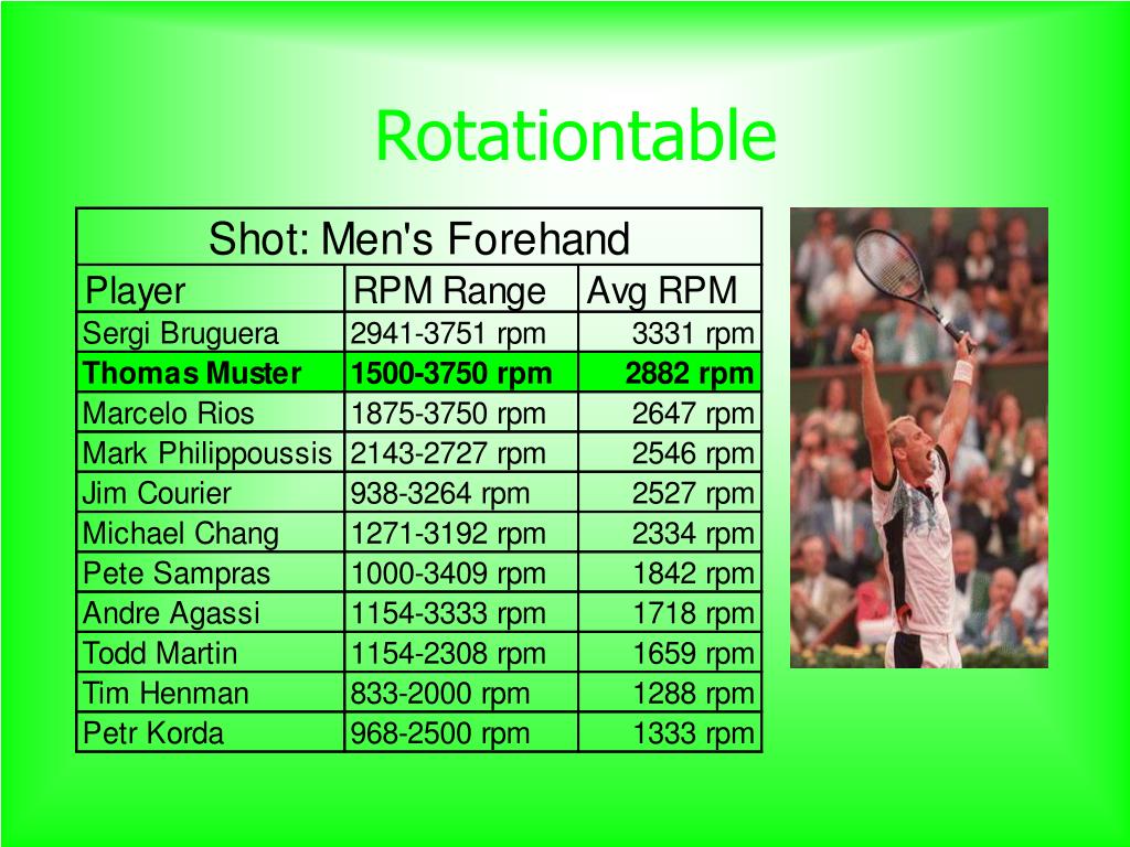 Contact time of the string • Different strings are a result of clamping different weights of the strings in the racket. It is effective that there are soft and hard strings. • The hard strings are very good for the controlled Top-Spin-Game, but not for very fast and varied game. (Thomas Muster) • The soft string is very difficult to play but you can bang very hard and strong balls, because of the elasticity of the soft strings like a trampoline does. (John McÉnroe)