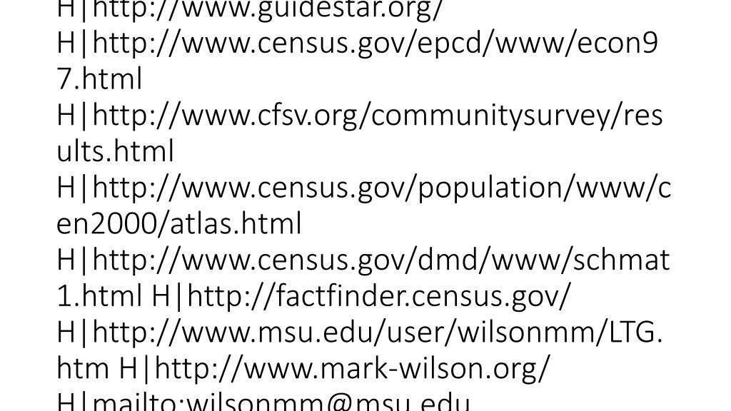 vti_cachedlinkinfo:VX|H|http://www.eduplace.com/ss/ssmaps/index.html H|http://www.lib.msu.edu/coll/main/maps/online.html H|http://www.lib.utexas.edu/maps/index.html H|http://www.nationalgeographic.com/xpeditions H|http://www.colorado.edu/geography/gcraft/notes/mapproj/mapproj.html H|http://www.nccs.urban.org/ H|http://www.guidestar.org/ H|http://www.census.gov/epcd/www/econ97.html H|http://www.cfsv.org/communitysurvey/results.html H|http://www.census.gov/population/www/cen2000/atlas.html H|http://www.census.gov/dmd/www/schmat1.html H|http://factfinder.census.gov/ H|http://www.msu.edu/user/wilsonmm/LTG.htm H|http://www.mark-wilson.org/ H|mailto:wilsonmm@msu.edu H|http://www.nonprofitmichigan.org/ H|http://multimedia2.freac.fsu.edu/fga/maps.html