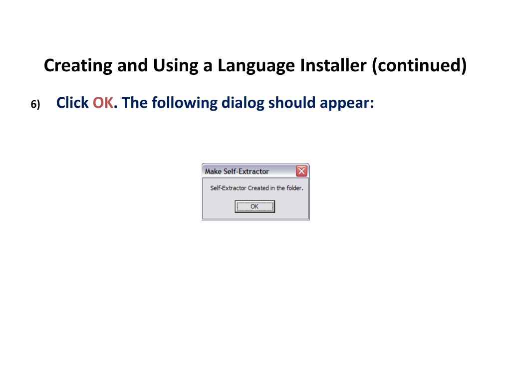 Creating and Using a Language Installer (continued) • Click OK. The following dialog should appear: