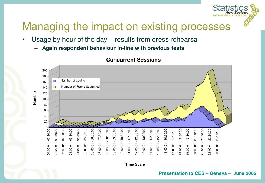 Managing the impact on existing processes • Uptake – census focussed on a single day – results from dress rehearsal • Respondent behaviour in-line with previous tests