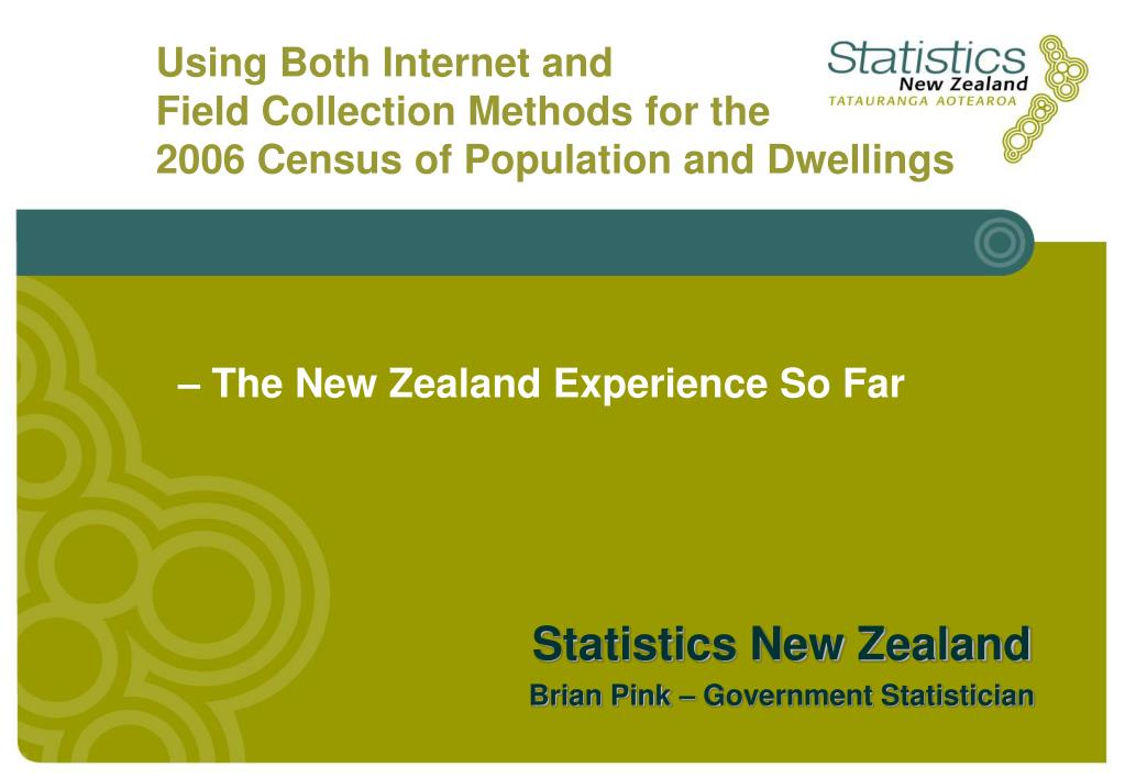 Using Both Internet and Field Collection Methods for the 2006 Census of Population and Dwellings – The New Zealand Experience So Far Statistics New Zealand Brian Pink – Government Statistician