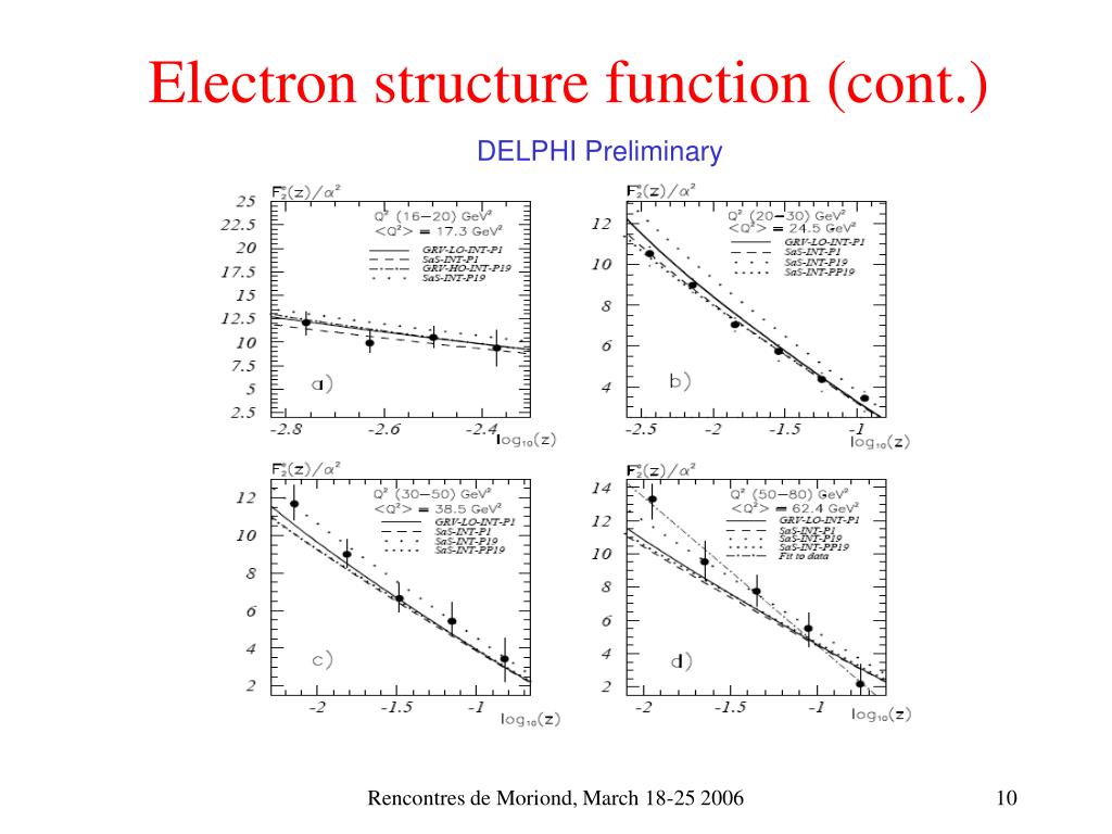 Electron structure function (cont.) DELPHI Preliminary Rencontres de Moriond, March 18-25 2006