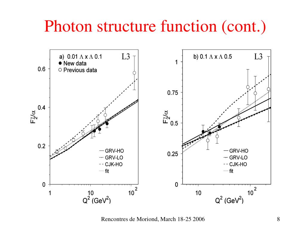 Photon structure function (cont.) Rencontres de Moriond, March 18-25 2006