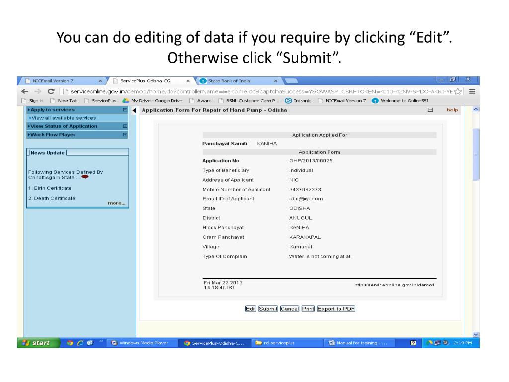 You can do editing of data if you require by clicking “Edit”. Otherwise click “Submit”.
