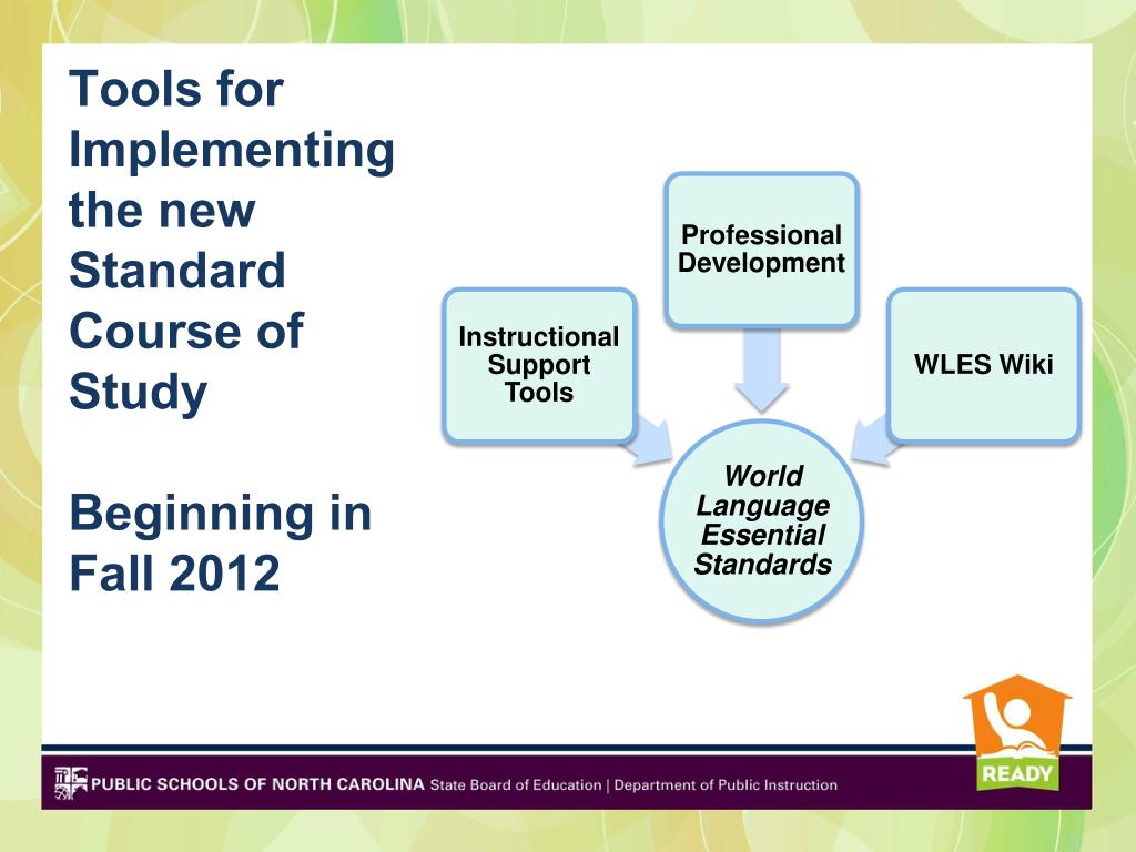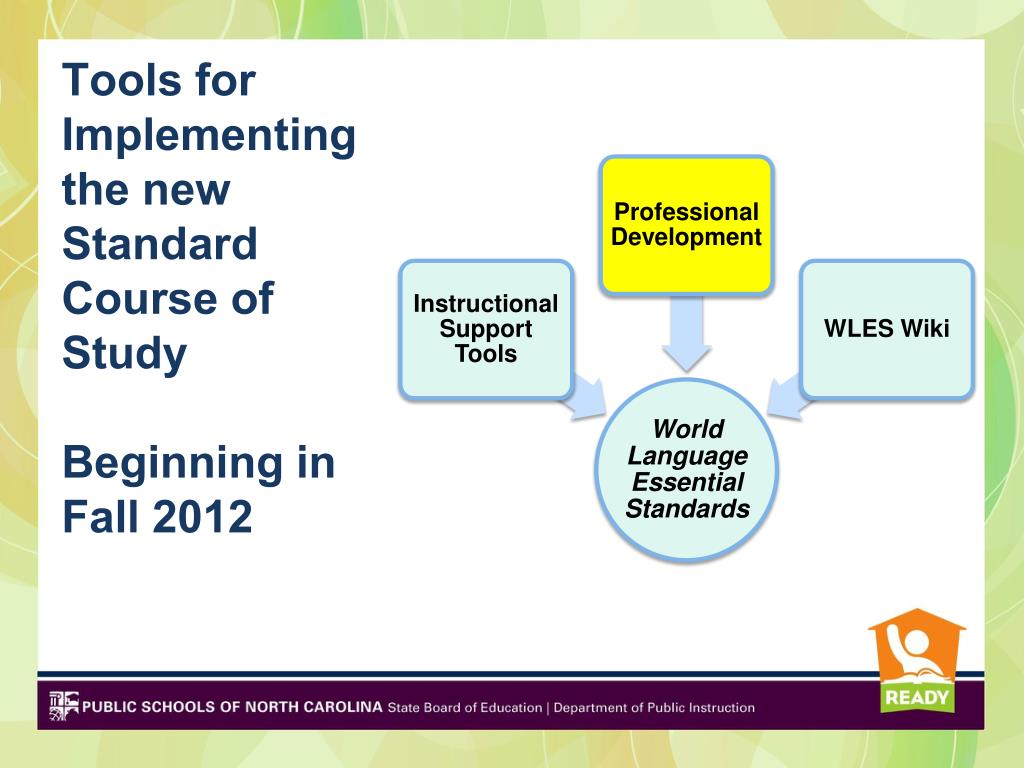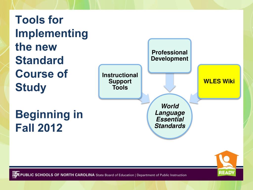 Tools for Implementing the new Standard Course of Study Beginning in Fall 2012