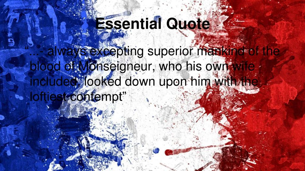 Essential Quote “...- always excepting superior mankind of the blood of Monseigneur, who his own wife included, looked down upon him with the loftiest contempt”