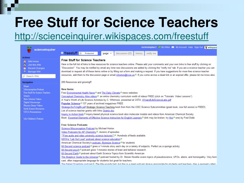 Free Stuff for Science Teachershttp://scienceinquirer.wikispaces.com/freestuff