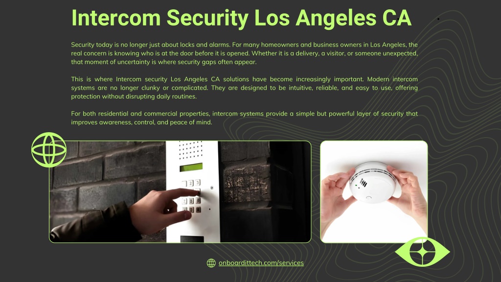 Intercom Security Los Angeles CA Security today is no longer just about locks and alarms. For many homeowners and business owners in Los Angeles, the real concern is knowing who is at the door before it is opened. Whether it is a delivery, a visitor, or someone unexpected, that moment of uncertainty is where security gaps often appear. This is where Intercom security Los Angeles CA solutions have become increasingly important. Modern intercom systems are no longer clunky or complicated. They are designed to be intuitive, reliable, and easy to use, offering protection without disrupting daily routines. For both residential and commercial properties, intercom systems provide a simple but powerful layer of security that improves awareness, control, and peace of mind. onboardittech.com/services