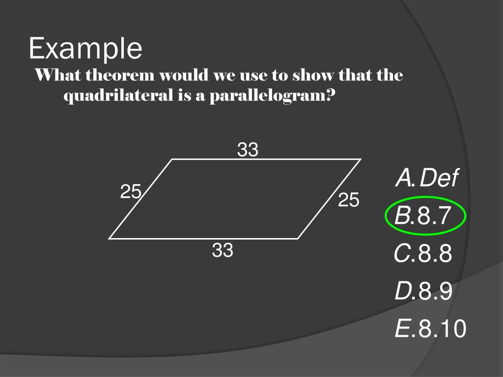 Section 8.3 Show that a Quadrilateral is a Parallelogram