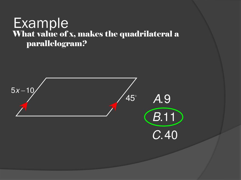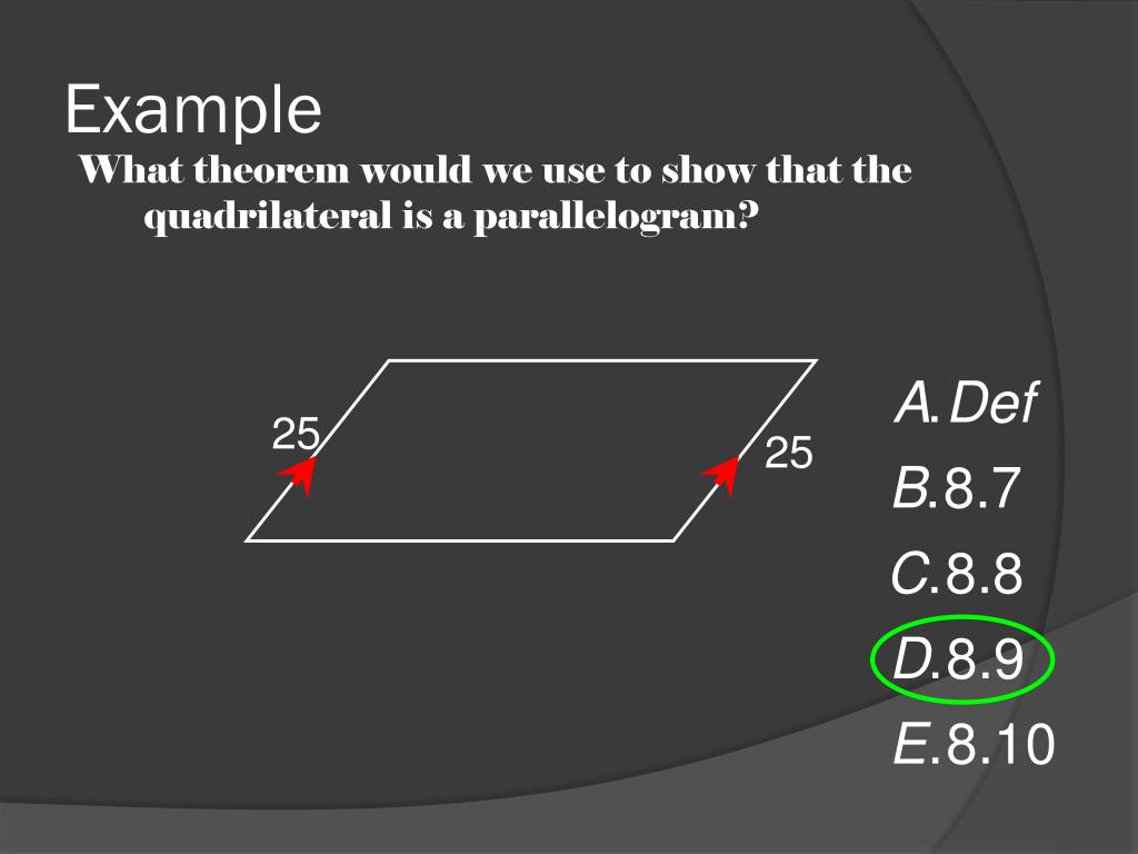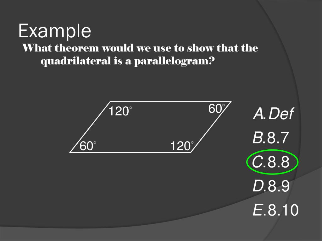 Example What theorem would we use to show that the quadrilateral is a parallelogram? Axis of symmetry Vertex