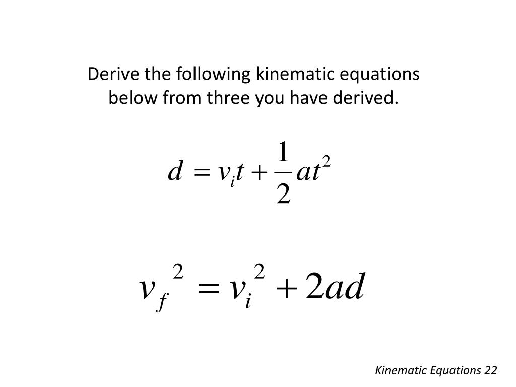 Derive the following kinematic equations below from three you have derived. Kinematic Equations 22