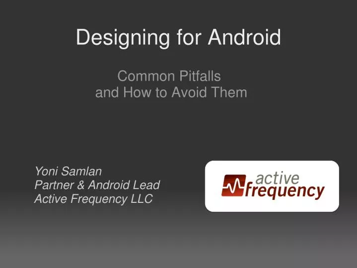 Designing for Android Common Pitfalls and How to Avoid Them Yoni Samlan Partner & Android Lead Active Frequency LLC