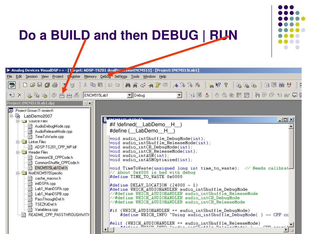 Do a BUILD and then DEBUG | RUN LabDemo2007 #if !defined(__LabDemo__H__) #define (__LabDemo__H__) Setting up TigerSHARC laboratory station