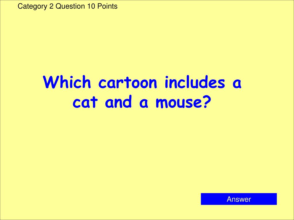 Category 2 Question 10 Points Which cartoon includes a cat and a mouse? Answer