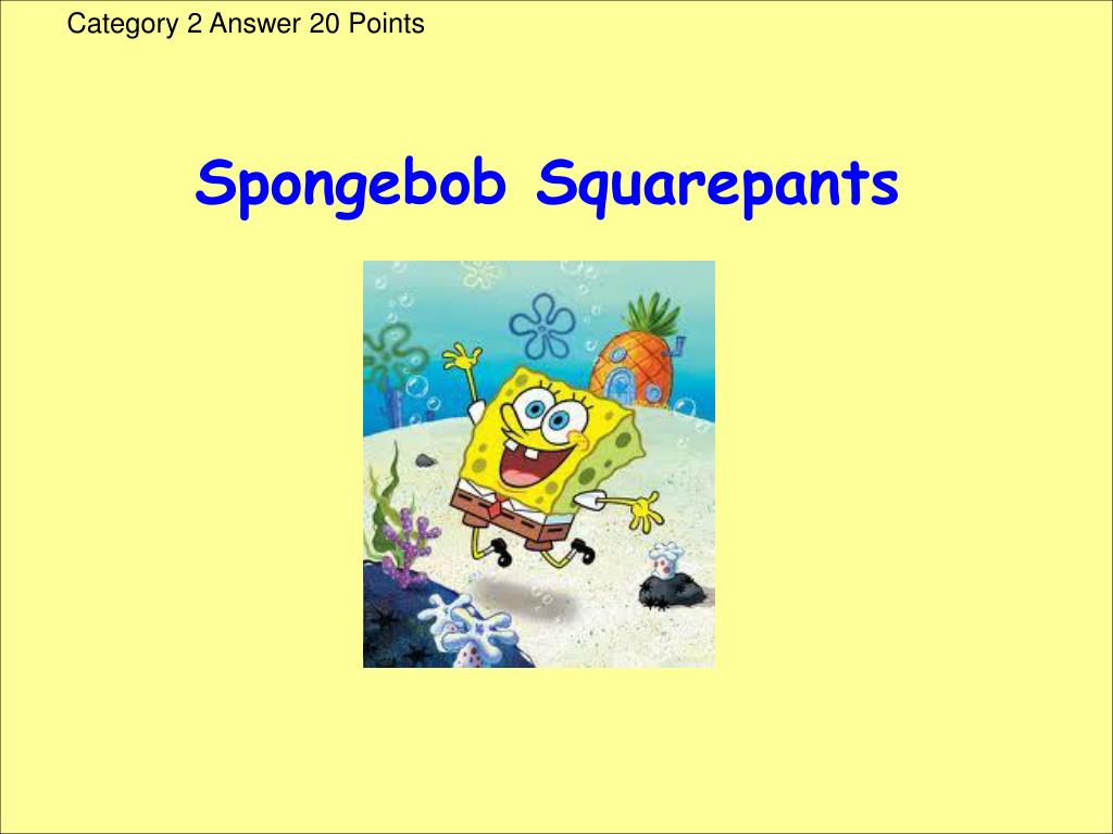 Category 2 Question 20 Points Which Cartoon includes a talking sponge who lives in the sea? Answer