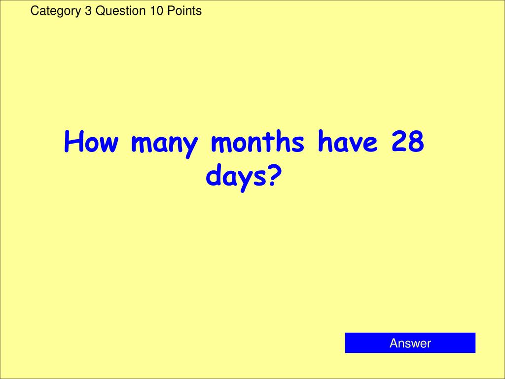 Category 3 Question 10 Points How many months have 28 days? Answer