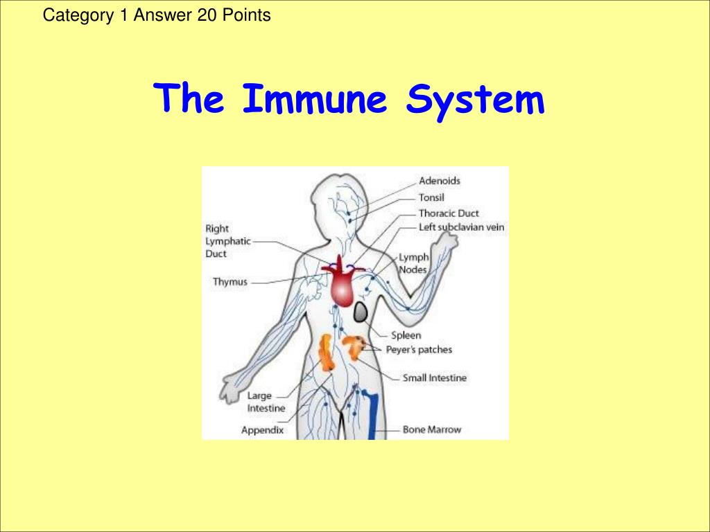 Category 1 Question 20 Points Which system defends against pathogens and diseases? Answer