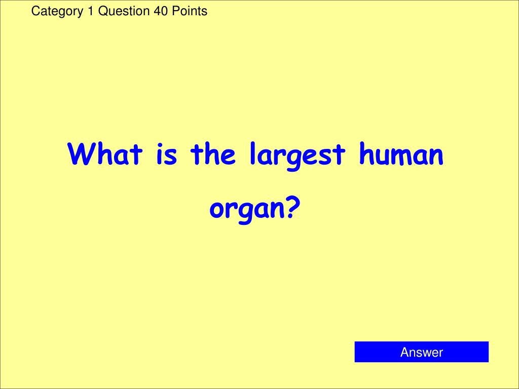 Category 1 Question 40 Points What is the largest human organ? Answer