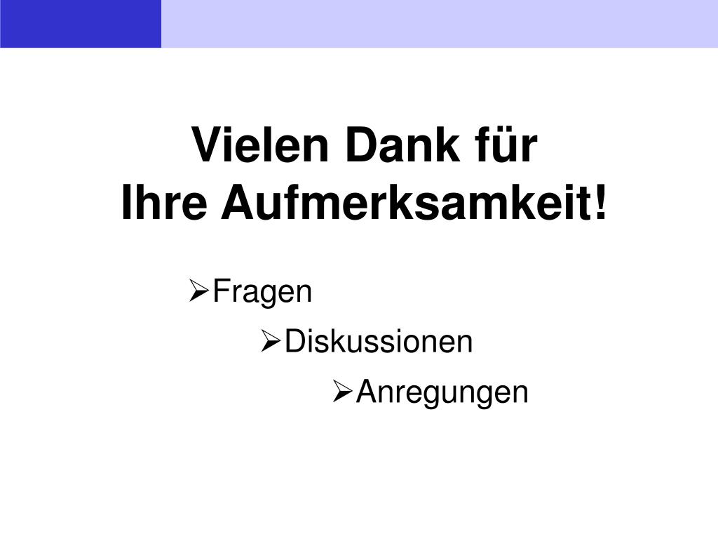 Vielen Dank für Ihre Aufmerksamkeit! • Fragen • Diskussionen • Anregungen