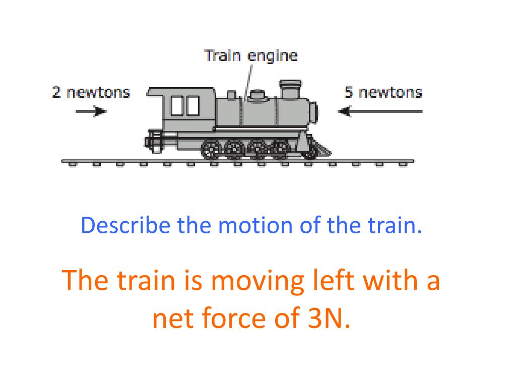 Describe the motion of the train. The train is moving left with a net force of 3N.