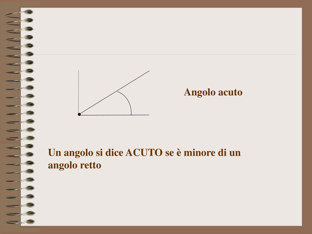 Angolo acuto Un angolo si dice ACUTO se è minore di un angolo retto