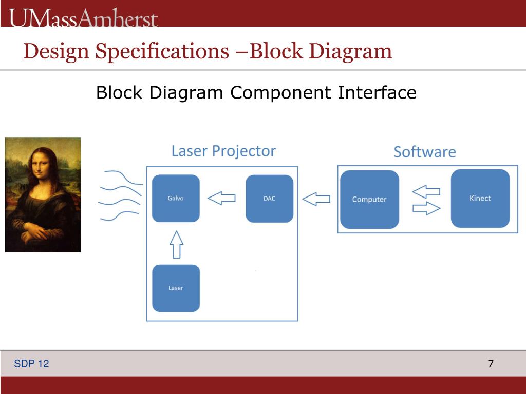 Midway Design Review • Initial design and prototype • A working laser system that will project onto any surface • Computer interfacing with the Kinects • Controlling the laser with a computer input to draw basic shapes