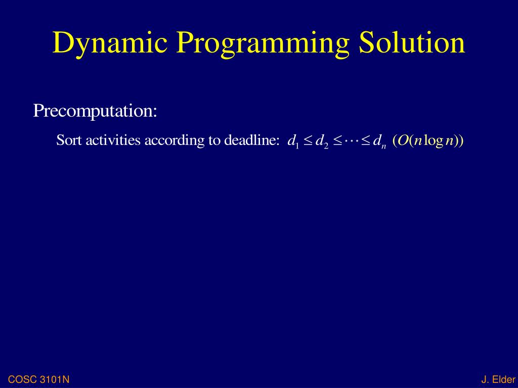 Decide not to schedule job i Profit from job i Profit from scheduling activities that end before job i begins Step 2. Provide a Recurrent Solution
