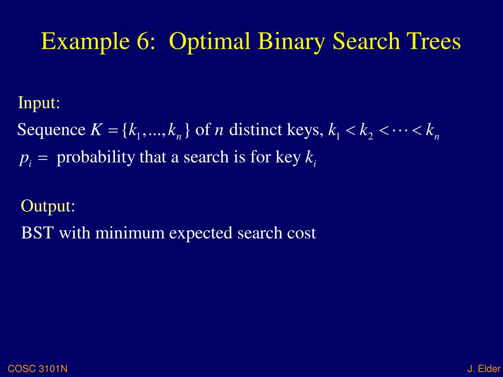 Expected cost of search for left subtree Added cost when subtrees embedded under root Expected cost of search for right subtree Step 2. Provide a Recurrent Solution