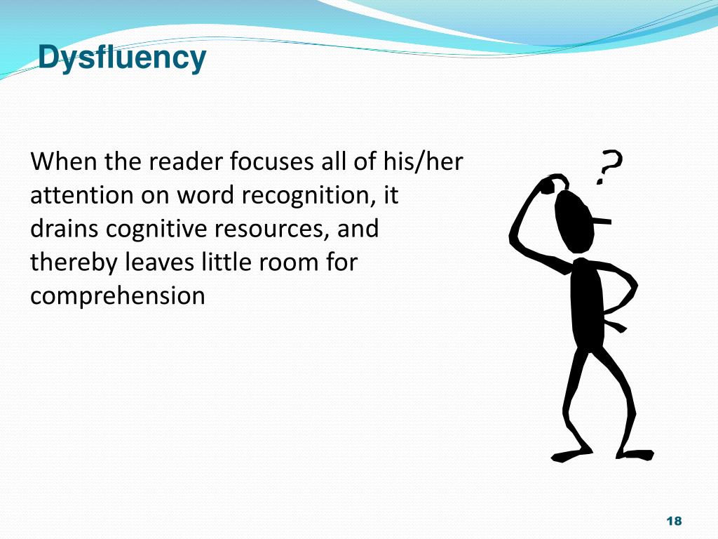 Dysfluency When the reader focuses all of his/her attention on word recognition, it drains cognitive resources, and thereby leaves little room for comprehension
