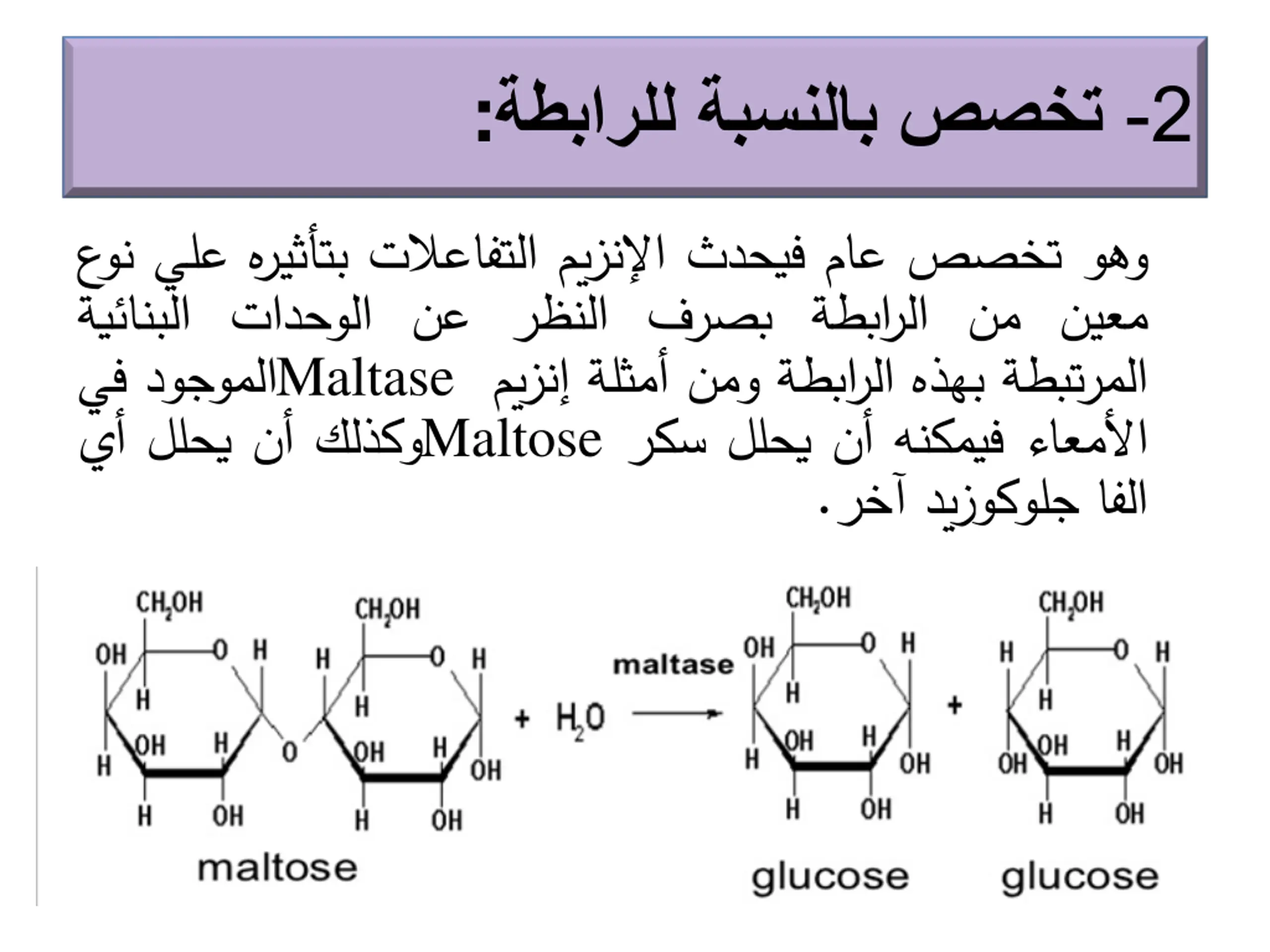 Specificity of enzymes ل قو فخا ف ع سمخا ماوعخا ع ميزنلإا زيمت يتخا مهأ مو يغ • و صتخا يويحخا يلي اميف تاميزنلإا صصخت عاونأ حيضوت : نكميو •