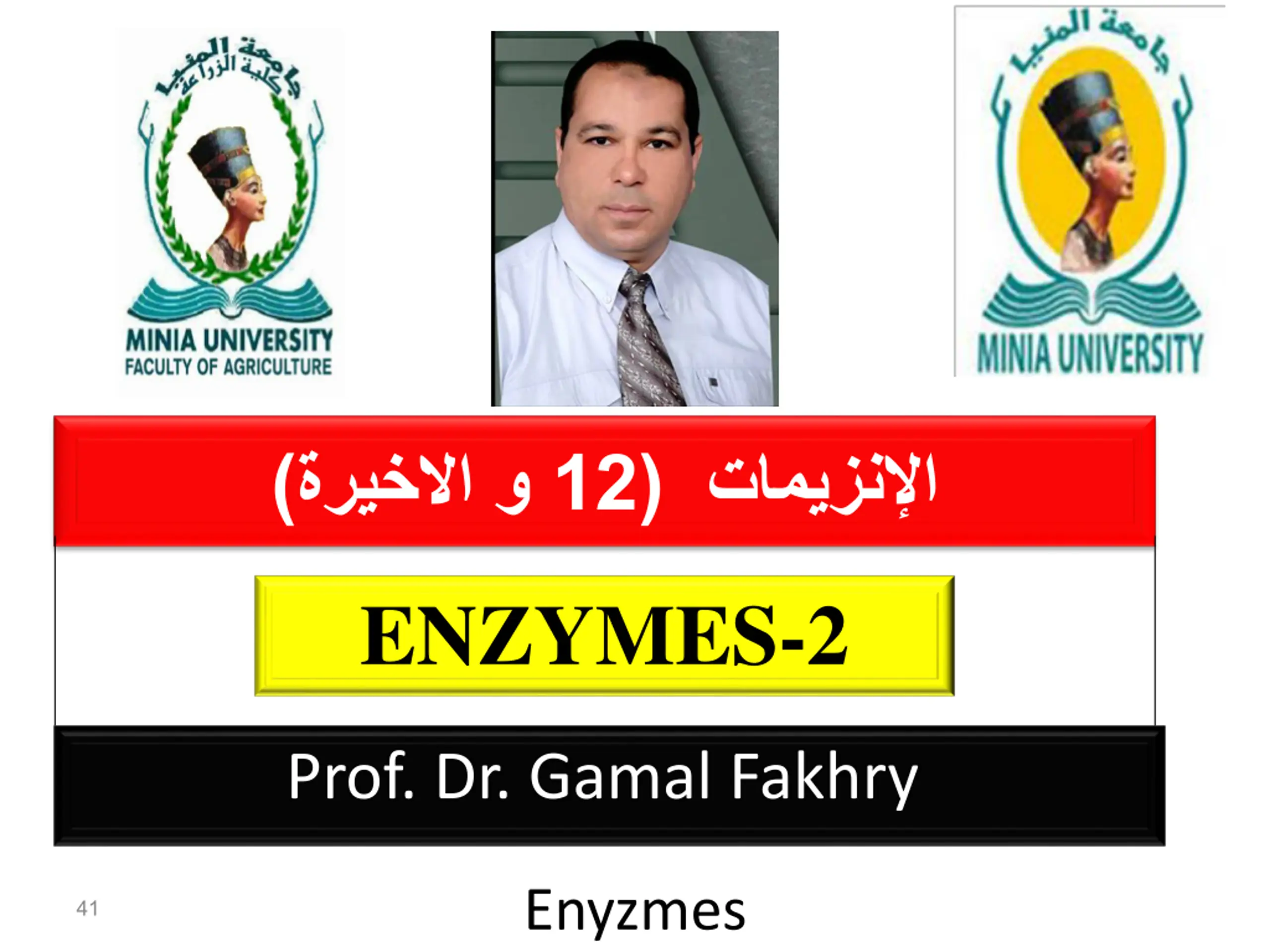 ةرمخلاا و ) 12 ( تامينز لإا ENZYMES-2 Prof. Dr. Gamal Fakhry Enyzmes 41