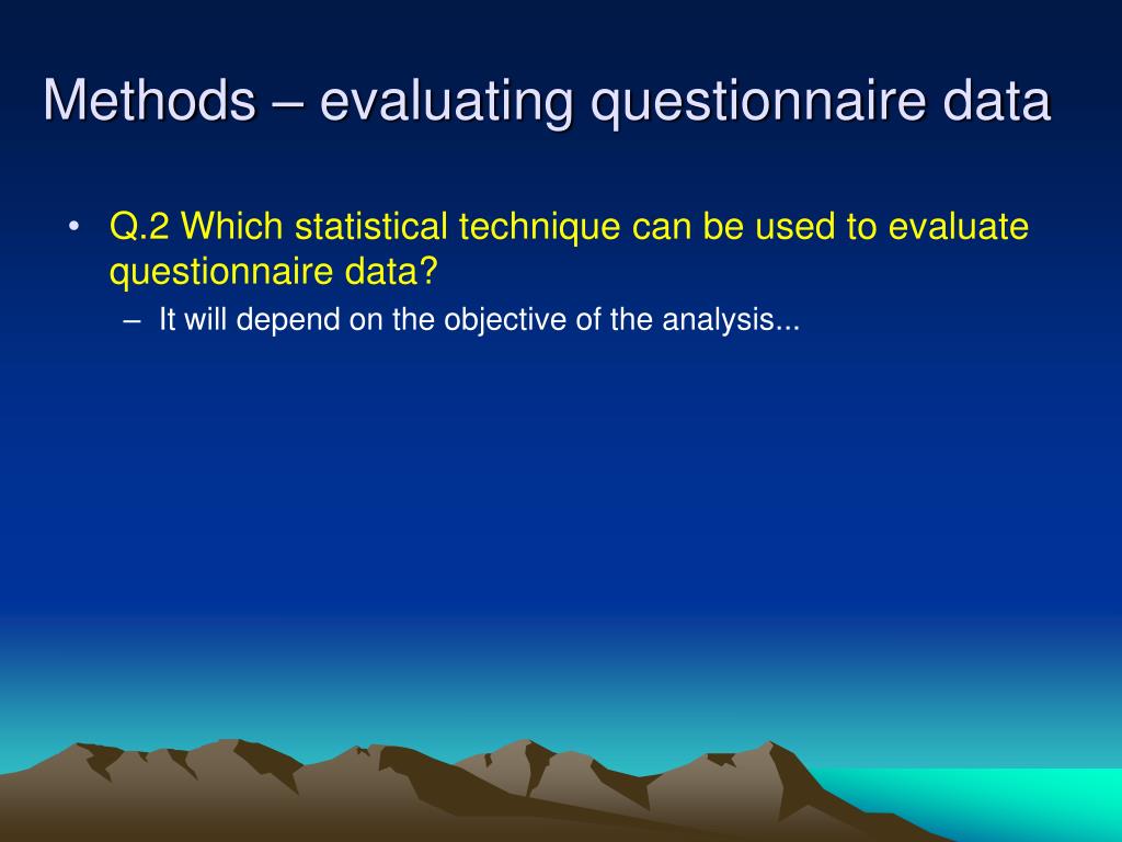 Methods – evaluating questionnaire data • Q.2 Which statistical technique can be used to evaluate questionnaire data?