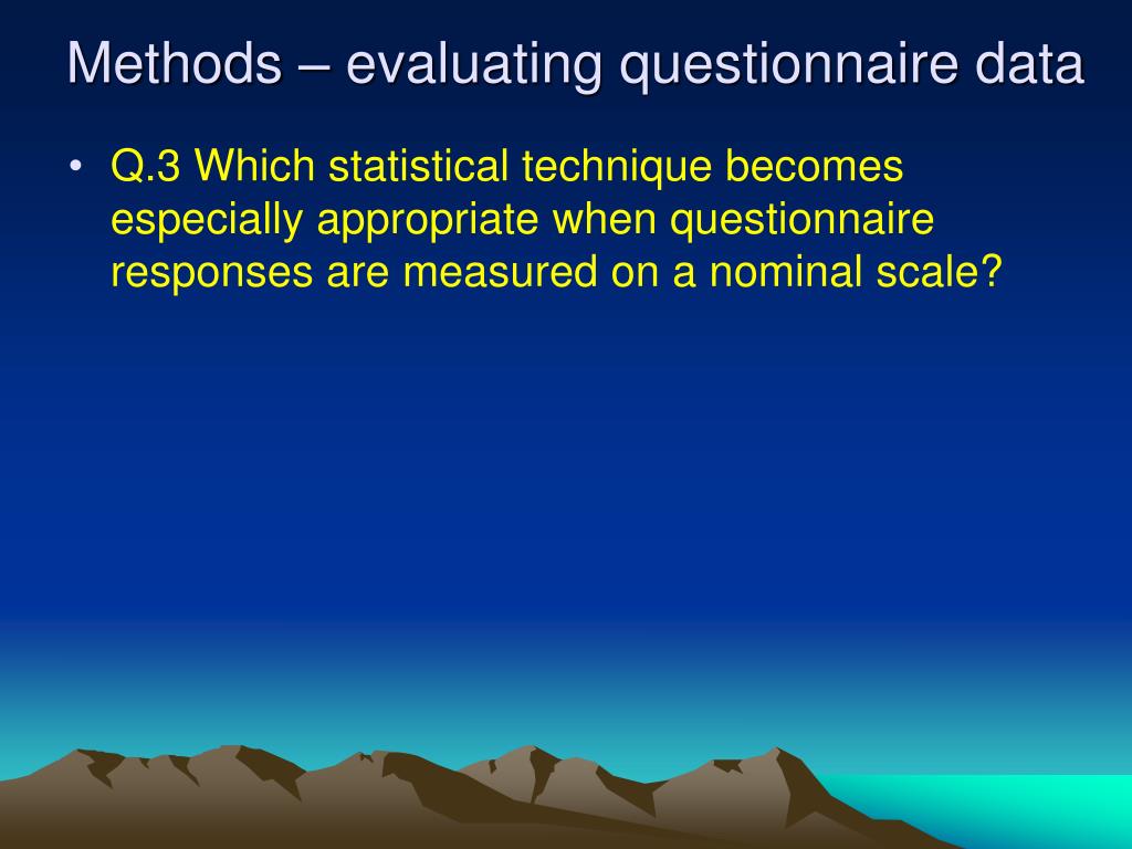 Methods – evaluating questionnaire data • Q.3 Which statistical technique becomes especially appropriate when questionnaire responses are measured on a nominal scale?