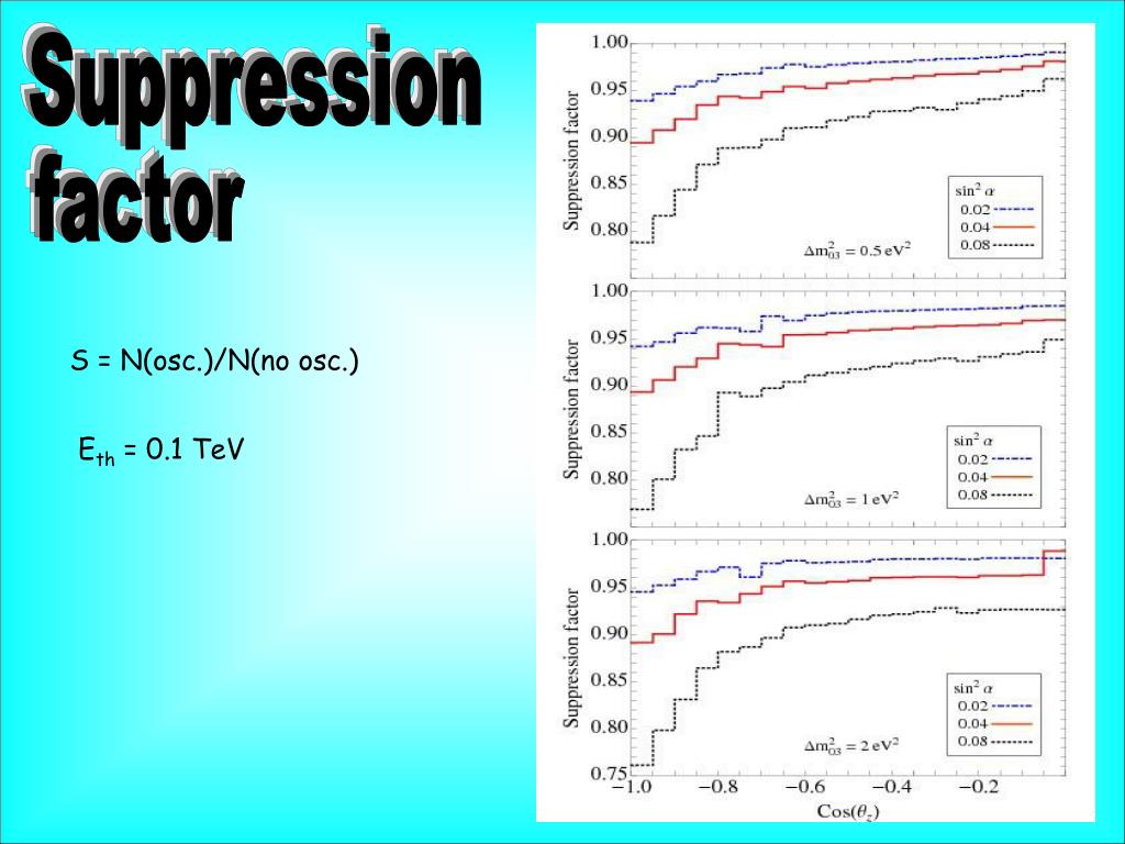 Suppression factor S = N(osc.)/N(no osc.) Eth = 0.1 TeV