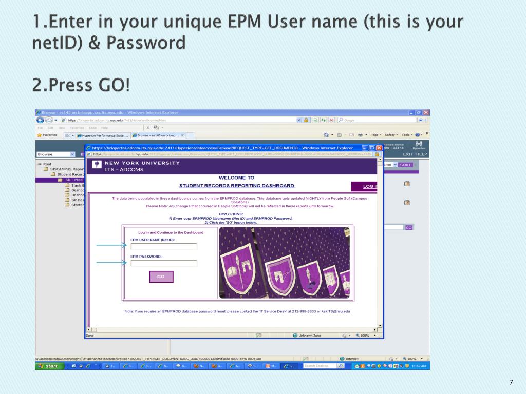 1.Enter in your unique EPM User name (this is your netID) & Password2.Press GO!