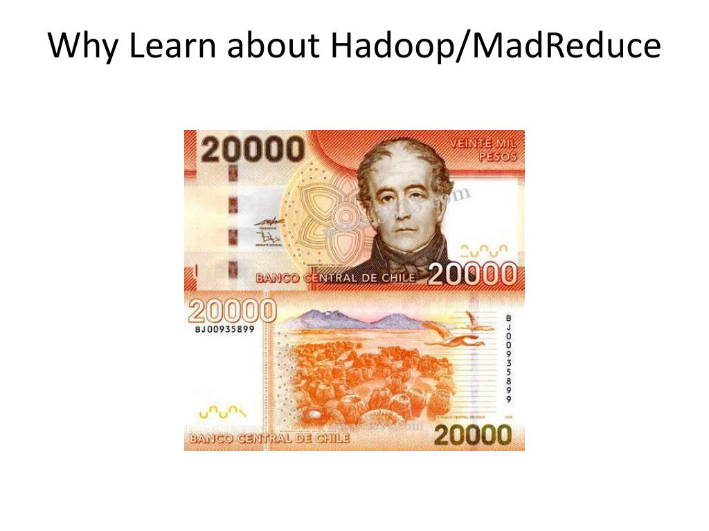 More in Hadoop: Chaining Jobs • Sometimes we need to chain jobs • In Hadoop, can pass a set of Jobs to the client • x.addDependingJob(y)