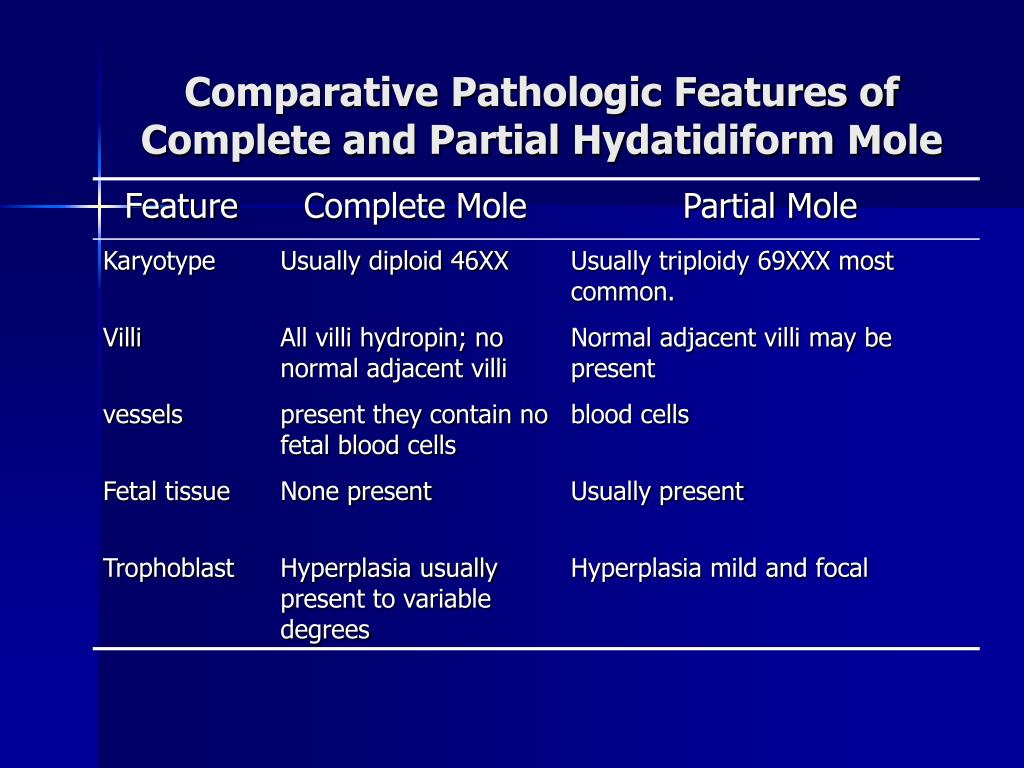 Comparative Pathologic Features of Complete and Partial Hydatidiform Mole
