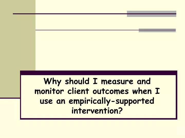 Why should I measure and monitor client outcomes when I use an empirically-supported intervention?. 1: To Obtain the Best Client Outcomes. Even when you use an empirically supported intervention, you still don’t know how it will work with a particular client