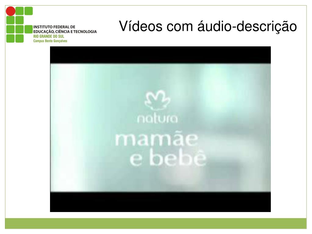 Vídeos em libras Imagem mostrando o vídeo em libras que fala sobre a acessibilidade dos ambientes virtuais. Fonte: http://www.bento.ifrs.edu.br/ept/video.php