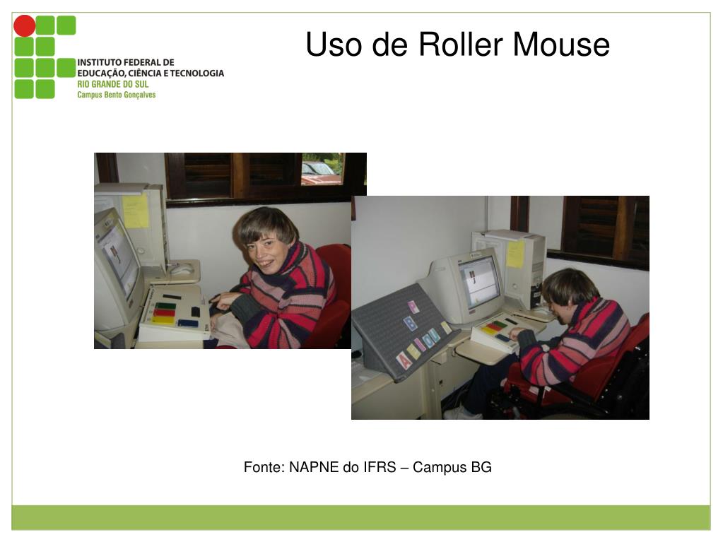 Uso de Roller Mouse Figura 1 e 2: Aluna do núcleo com paralisia cerebral utilizando o roller mouse. Fonte: NAPNE do IFRS – Campus BG